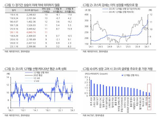 김재승 현대차증권 연구원은 "이번 강세장은 이익 성장을 바탕으로 한 펀더멘털 장세라는 점에서 코스피는 여전히 저렴하다"며 "PER을 주당순이익(EPS) 성장률로 나눈 PEG는 코스피가 글로벌 주요 증시 중 가장 저렴하다"고 말했다.