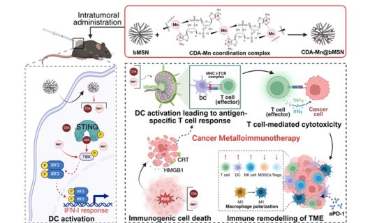 연구진은 이러한 문제를 해결하기 위해 망간 이온(Mn²⁺)과 CDN의 배위결합 복합체를 다공성 실리카 나노입자 내부 기공에 탑재해 망간 이온과 CDN이 활성 제약 성분으로 작용하는 나노-면역항암제를 개발했다. 나노입자의 중요한 설계 요소로서, 체내 필수 미네랄인 망간 이온은 STING 경로의 활성을 증폭시킬 수 있고 생분해가 가능한 다공성 실리카 나노입자를 기반으로 하여 생체친화도를 높였다.