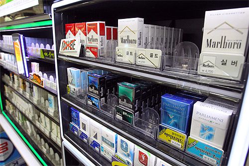 서울 영등포 여의도 한 편의점에 진열된 담배. [사진= 이형석 기자] |