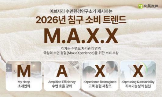 이브자리 수면환경연구소가 19일 2026년 침구 소비 트렌드를 관통할 키워드로 'M.A.X.X'를 제시했다.
