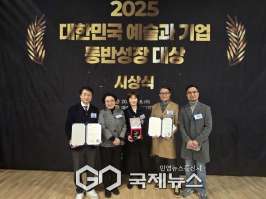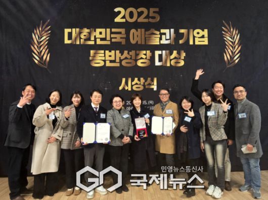 (서울=국제뉴스) 김서중 기자 = 관악문화재단(대표이사 소홍삼)은 지난 1월 15일, 예술가의 집에서 열린 「2025 대한민국 예술과 기업 동반성장 대상 시상식」에서 우수사례(재단 부문)로 선정돼 한국문화예술위원장상과 상금 1,000만 원을 수상했다.