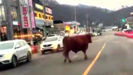 이 소는 도축장 2㎞ 근방을 1시간여 동안 돌아다니다가 경찰과 소방에 구조됐습니다.