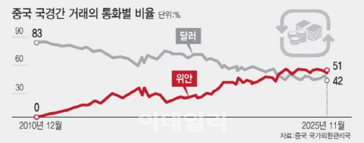 중국 금융기관의 해외 대출에서 위안화 비중도 커지고 있다. 중국 중앙은행에 따르면 2024년 말 기준 총 2조 위안(약 424조원) 규모 해외 대출 중 45%가 위안화로 이뤄졌다. 10% 미만에 그쳤던 10년 전에 비해 급증한 수치다.