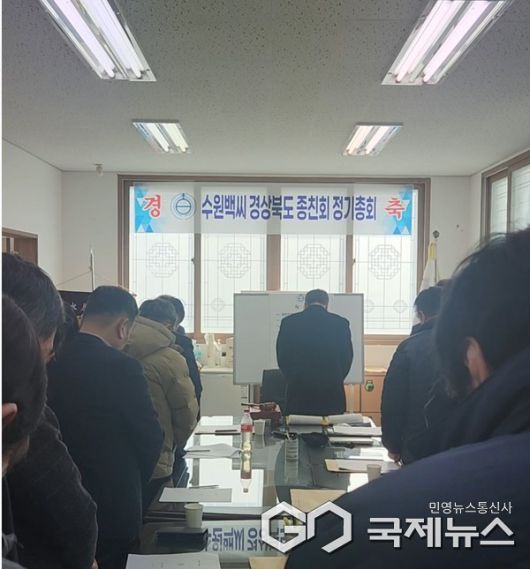 (대구=국제뉴스) 백운용 기자 = 17일, 겨울 답지 않은 화장하고 포근한 날씨 속에 백화목(금릉부원군파) 경북 수원백씨 총친회 회장은 최근 젊은 세대를 중심으로 '족보(族譜)'에 대한 인식이 변화하고 있는 흐름을 반영하여 병오년 새해 대동보 및 인터넷 족보를 편찬하기 위해 경북 김천시 삼락동 소재 수원백씨 금릉부원군파 원백당에서 총회를 개최했다.