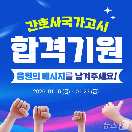 대한간호협회는 오는 23일 시행되는 2026년도 간호사 국가시험을 앞두고 '국시 합격 응원 캠페인'을 진행한다고 19일 밝혔다. 간협은 시험 당일까지 8일간 공식 사회관계망서비스(SNS) 채널을 통해 응원 메시지를 전달하고, 참여형 이벤트도 함께 운영한다.