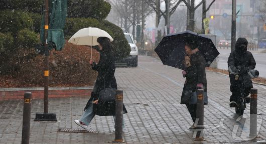 (전주=뉴스1) 유경석 기자 = 진눈깨비가 내린 19일 전북 전주시 기린대로에서 우산을 쓴 시민들이 발걸음을 옮기고 있다. 2026.1.19/뉴스1Yks919@news1.krCopyright ⓒ 뉴스1. All rights reserved. 무단 전재 및 재배포, AI학습 이용 금지.
