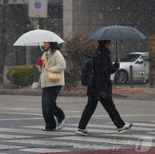 (전주=뉴스1) 유경석 기자 = 진눈깨비가 내린 19일 전북 전주시 기린대로에서 우산을 쓴 시민들이 발걸음을 옮기고 있다. 2026.1.19/뉴스1Yks919@news1.krCopyright ⓒ 뉴스1. All rights reserved. 무단 전재 및 재배포, AI학습 이용 금지.