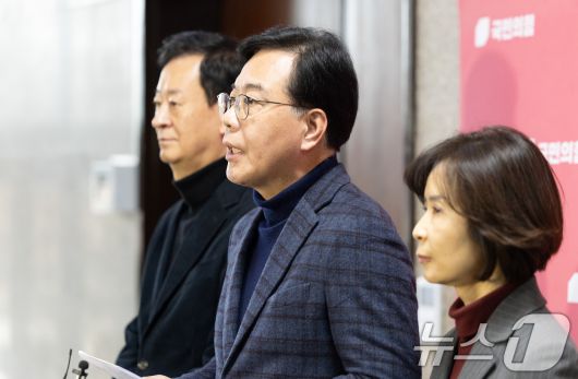 송언석 국민의힘 원내대표가 18일 서울 여의도 국회에서 현안 관련 브리핑을 하고 있다. 2026.1.18/뉴스1 ⓒ News1 이승배 기자 |