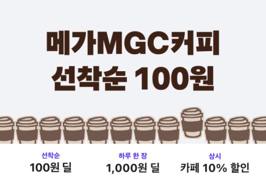 배민 운영사인 우아한형제들은 오는 25일까지 메가MGC커피에서 배민 픽업 주문 시 '아메리카노(HOT)'를 100원에 구매할 수 있는 '아메리카노(HOT) 100원 딜' 행사를 진행한다고 19일 밝혔다. 한정 수량이 소진되더라도 같은 기간 매일 1회 아메리카노를 1000원(정가 1700원)에 픽업 구매할 수 있다.