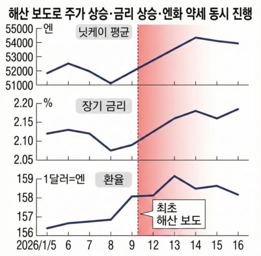 다카이치 사나에 일본 총리가 높은 내각 지지율을 무기 삼아 오는 23일 중의원 조기 해산을 강행할 예정인 가운데, 일본 유권자 절반은 이번 해산 결정에 반대한다는 여론조사 결과가 나왔다. 그러나 야권에 대한 낮은 기대감 탓에 선거 결과는 여당의 우위가 점쳐지는 것으로 나타났으며, 금융시장도 자민당의 ‘과반 의석 확보’를 선반영해 움직이고 있다.