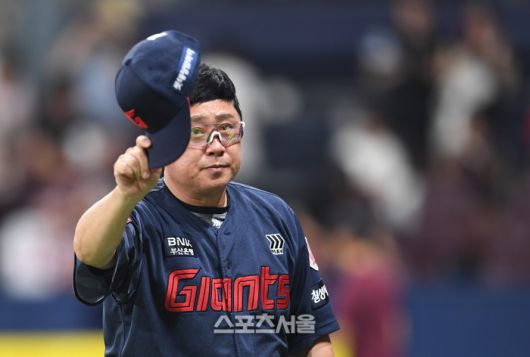 롯데 김태형 감독이 24일 고척스카이돔에서 열린 2025 KBO리그 키움과 경기에서 4-0으로 승리한 뒤 모자를 벗어 팬들에게 인사를 하고 있다. 고척 | 박진업 기자 upandup@sportsseoul.com |