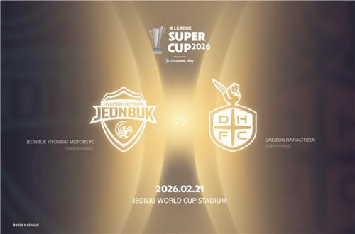 한국프로축구연맹은 '쿠팡플레이 K리그 슈퍼컵 2026'을 K리그1 개막 일주일 전인 2월 21일 오후 2시 전주월드컵경기장에서 개최한다고 19일 밝혔다.