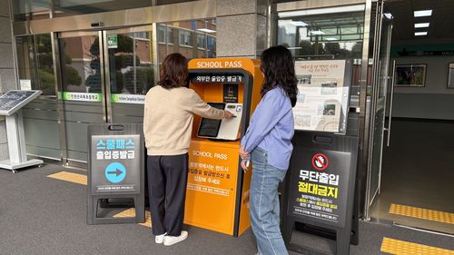 스쿨패스 시스템으로 학교 방문객의 신원을 확인하고 출입증을 발급하는 모습. |
