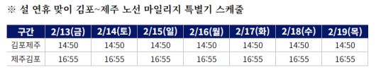 대한항공이 설 연휴를 맞아 2월 13일부터 19일까지 매일 김포~제주 노선에 마일리지 특별기를 띄운다.