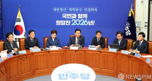 [서울=뉴스핌] 정일구 기자 = 정청래 더불어민주당 대표가 19일 오전 서울 여의도 국회에서 열린 더불어민주당 최고위원회의에서 모두발언을 하고 있다. 2026.01.19 mironj19@newspim.com