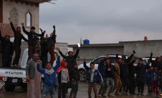 라카에 진입한 시리아 정부군을 환영하는 시민들 /AP 연합 |