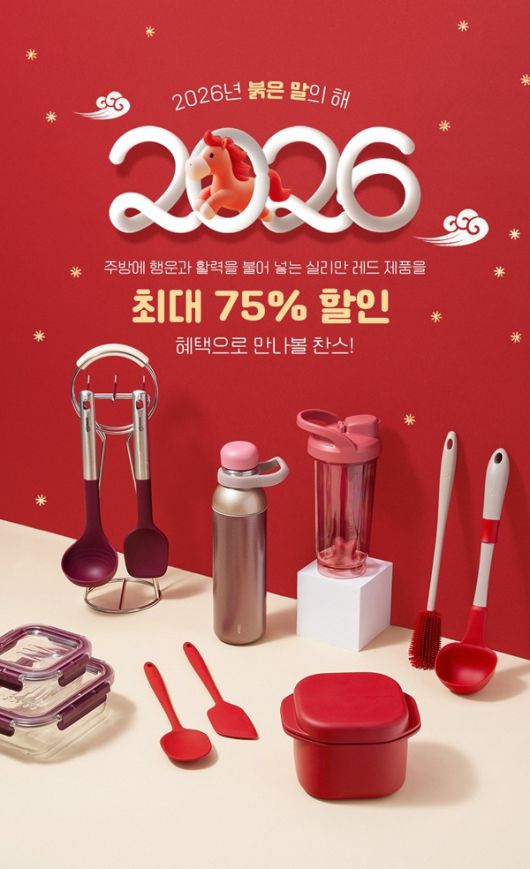 [서울경제TV=박수열기자] 프리미엄 실리콘 주방용품 브랜드 실리만(Sillymann)은 2026년 '붉은 말의 해'를 맞아 레드 컬러 제품을 최대 75% 할인하는 새해맞이 프로모션을 진행한다고 19일 밝혔다.