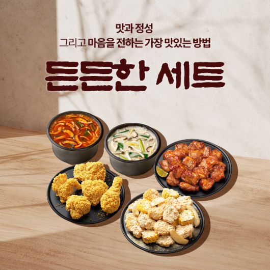 든든한 세트는 후라이드 치킨을 포함해 콘소메 안심치킨, 오븐구이 닭다리(자메이카) 등 5종으로 구성됐다.