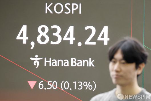 [서울=뉴스핌] 류기찬 기자 = 19일 오전 서울 중구 하나은행 딜링룸 전광판에 코스피 지수가 표시되고 있다. 이날 코스피 지수는 전 거래일 대비 11.34포인트(0.23%) 하락한 4829.40, 달러/원 환율은 0.4원 오른 1474.00원에, 코스닥 지수는 1.66포인트(0.17%) 내린 952.93에 장을 시작했다. 2026.01.19 ryuchan0925@newspim.com