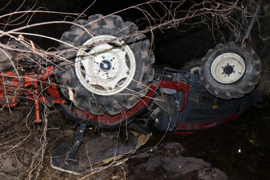 18일 오후 8시 16분쯤 경남 의령군 가례면 한 농로에서 트랙터가 2m 아래 하천으로 추락했다.