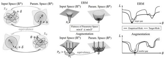 즉 입력 데이터 주변을 촘촘히 채우면, 이에 대응하는 모델 내부의 파라미터 공간도 평평해져 AI가 강건성을 갖추게 되는 것이다. 모델 손실함수의 지형이 평탄(Flat Minima)할 경우, 뾰족한 지형(Sharp Minima)에 비해 강건성이 높다.