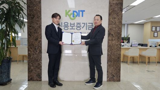 신용보증기금 '퍼스트펭귄 기업' 선정 기념 협약식에서 정의인 새비로보틱스 대표(사진 좌측)가 기념촬영을 하고 있다. 사진=퍼스트펭귄 |