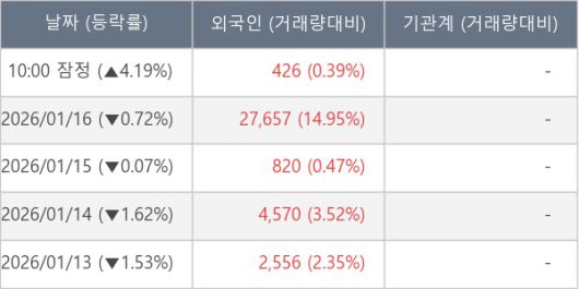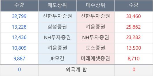 [표] 외국인ㆍ기관 순매매량 (단위 주)