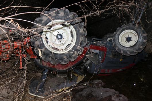 [시청자 제공 사진] 어제(18일) 저녁 8시 15분쯤 경남 의령군 가례면의 한 농로에서 트랙터가 2m 아래 하천으로 추락했습니다. 이 사고로 트랙터를 운행하던 80대 남성이 트랙터에 깔려 숨졌습니다. 경찰은 정확한 사고 원인을 조사하고 있습니다. 연합뉴스TV 기사문의 및 제보 : 카톡/라인 jebo23 하준(hajun@yna.co.kr)