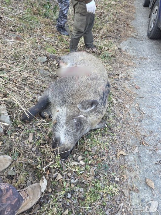 사살당한 멧돼지(인천 옹진군 제공/뉴스1) |