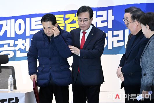 아시아투데이 송의주 기자 = 장동혁 국민의힘 대표가 19일 국회 본관 로텐더홀에서 '민주당의 공천 뇌물·통일교 게이트 특검 수용'을 촉구하며 단식농성을 하는 가운데 송언석 원내대표의 부축을 받고 있다. ⓒ "젊은 파워, 모바일 넘버원 아시아투데이"