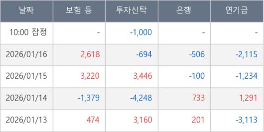 [표] 주요 기관별 순매매량 (단위 주)
