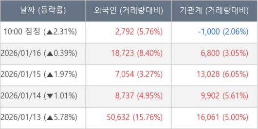 ※ 사모펀드 등 일부 기관의 순매매량은 표시되지 않음