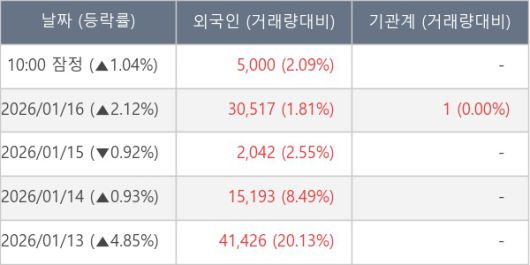 [표] 외국인ㆍ기관 순매매량 (단위 주)