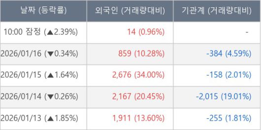 [표] 외국인ㆍ기관 순매매량 (단위 주)