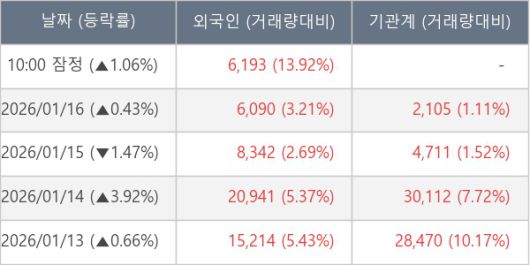 [표] 외국인ㆍ기관 순매매량 (단위 주)