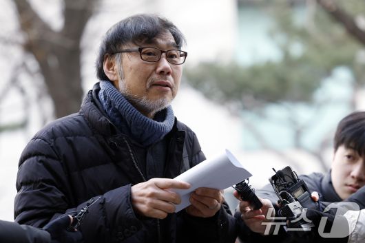 (서울=뉴스1) 박정호 기자 = 김순환 서민민생대책위원회 사무총장이 19일 오전 서울시 마포구 서울경찰청 공공범죄수사대 앞에서 김경 서울시의원 공천헌금 고발 관련 기자회견을 하고 있다. 김 사무총장은 기자회견 후 안규백 국방부 장관에 대한 고발장을 접수할 예정이다. 2026.1.19/뉴스1