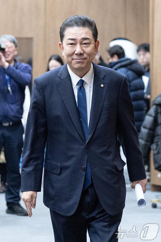 (서울=뉴스1) 이승배 기자 = 김병기 더불어민주당 의원이 19일 서울 여의도 국회 소통관에서 당 윤리심판원의 제명 결정에 대한 입장을 밝히는 기자회견을 하기 위해 단상으로 향하고 있다. 2026.1.19/뉴스1photolee@news1.krCopyright ⓒ 뉴스1. All rights reserved. 무단 전재 및 재배포, AI학습 이용 금지.