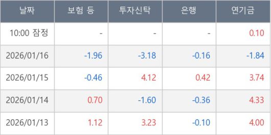 [표] 주요 기관별 순매매량 (단위 만주)