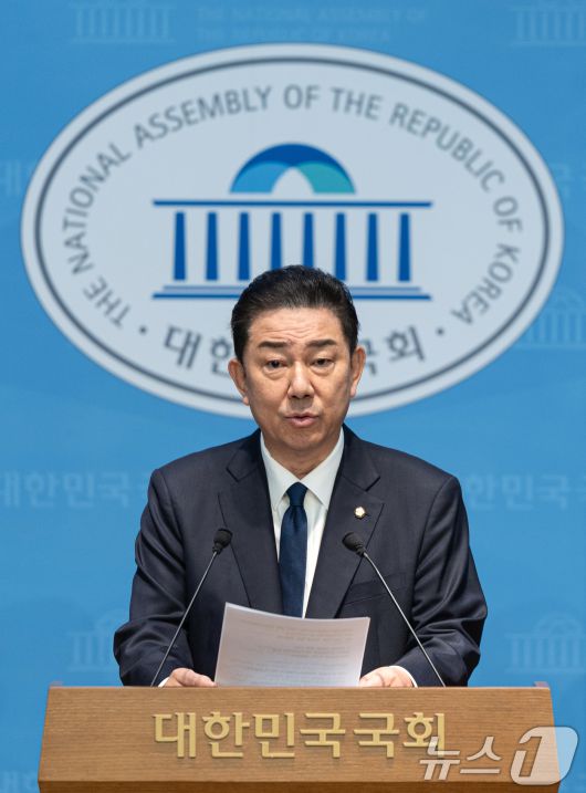 (서울=뉴스1) 이승배 기자 = 김병기 더불어민주당 의원이 19일 서울 여의도 국회 소통관에서 당 윤리심판원의 제명 결정에 대한 입장을 밝히는 기자회견을 하고 있다. 2026.1.19/뉴스1