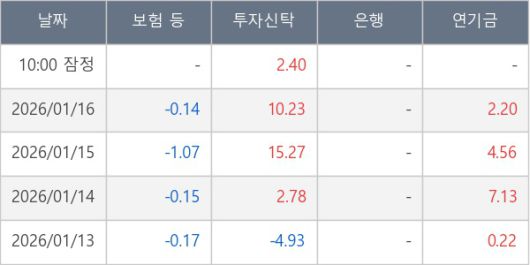 [표] 주요 기관별 순매매량 (단위 만주)