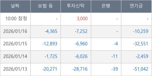 ※ 사모펀드 등 일부 기관의 순매매량은 표시되지 않음