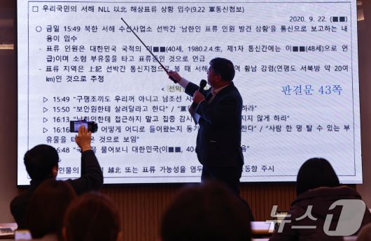 (서울=뉴스1) 김도우 기자 = '서해 공무원 피살 사건'의 유족 측 법률대리인 김기윤 변호사가 19일 서울 서초구 한 사무실에서 서해 피살 사건의 판결문 공개 기자회견에서 판결문을 공개하고 있다. 2026.1.19/뉴스1pizza@news1.krCopyright ⓒ 뉴스1. All rights reserved. 무단 전재 및 재배포, AI학습 이용 금지.
