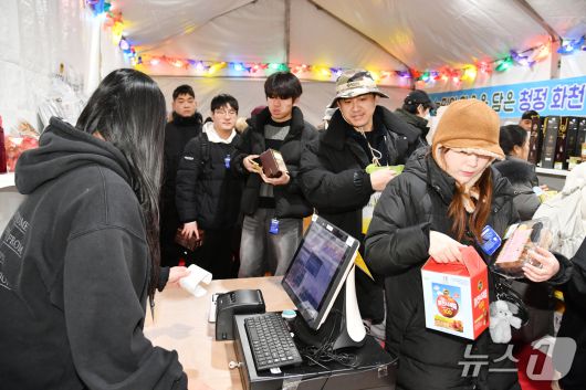 지난 17일 화천산천어축제장을 찾은 관광객들로 인해 축제장 내 농특산물 판매장이 붐비고 있다.(화천군 제공, 재판매 및 DB금지) |