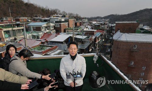 (서울=연합뉴스) 류영석 기자 = 오세훈 서울시장이 19일 서울 관악구 신림7구역 재개발사업 대상지를 찾아 현장을 점검, 발언하고 있다. 2026.1.19
