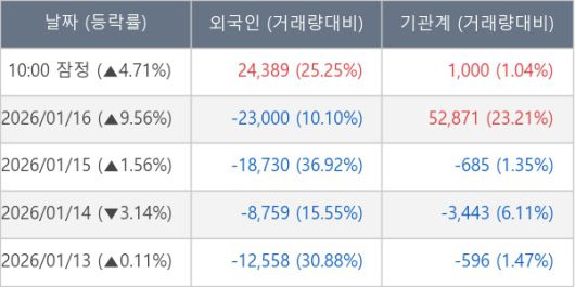 [표] 주요 기관별 순매매량 (단위 주)
