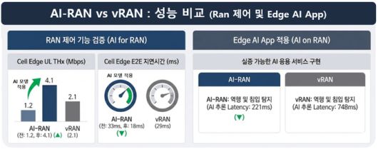 또, 별도의 전용 하드웨어 없이 기지국 자체에서 통신과 AI 서비스를 동시에 처리하는 구조를 구현, 특정 지점에서 기존 가상화 무선접속망(vRAN) 대비 AI 융합서비스 추론 처리 속도(Latency)를 단축하는 성과를 확인했다.