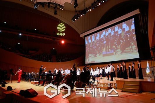 송파구립문화예술단체가 신년인사회에서 축하공연을 하고 있다. [사진제공=송파구청] |