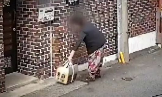 [헤럴드경제=민성기 기자] 전북 전주시의 한 주택가에서 생후 2개월 추정 강아지가 담긴 상자를 타인의 집 앞에 버리고 간 여성의 모습이 공개돼 동물 유기 논란이 일고 있다.