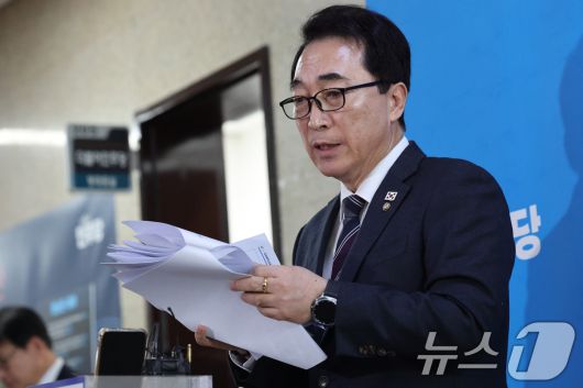 (서울=뉴스1) 이승배 기자 = 박수현 더불어민주당 수석대변인이 19일 서울 여의도 국회에서 당무위원회 결과에 대해 설명하고 있다. 2026.1.19/뉴스1