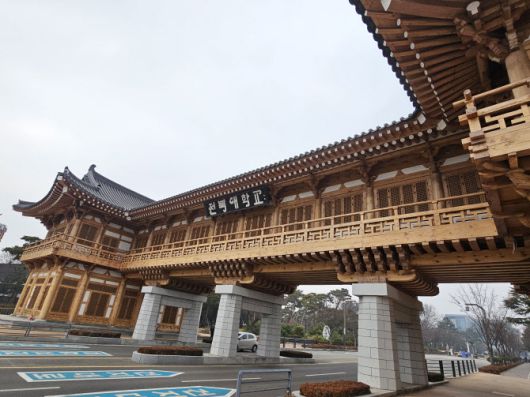 [전주·고창=이데일리 김은경 기자] 웅장한 한옥 건물 지붕 끝에 우아한 곡선을 그리며 하늘로 높이 뻗은 추녀가 시선을 사로잡는다. 지난 15일 찾은 이곳은 한옥 관광지가 아닌 전북대 전주캠퍼스 정문이다. 건물 안으로 들어서자 잘 짜인 문살 사이로 캠퍼스 주변 풍경이 한눈에 들어왔다.